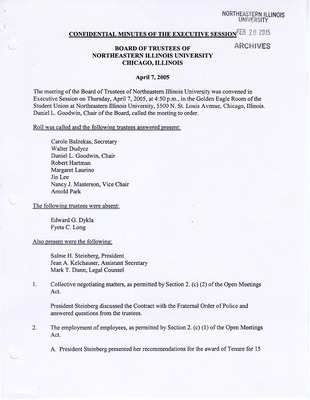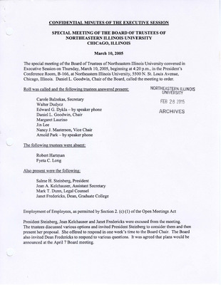 Meeting minutes for the Board of Trustees in 2005.