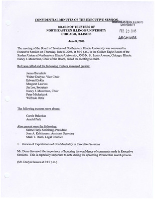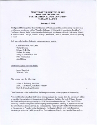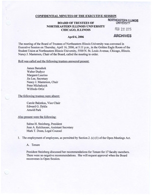 Meeting minutes for the Board of Trustees in 2006.