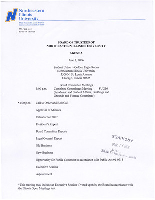 Meeting materials for the NEIU Board of Trustees