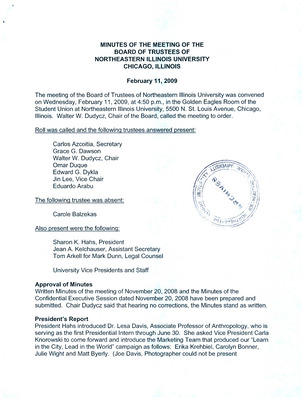 Meeting materials for the NEIU Board of Trustees