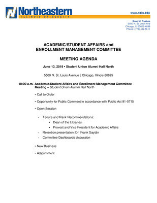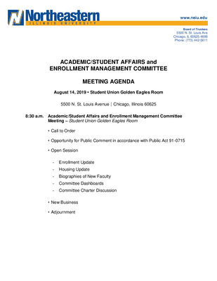 Meeting materials for the NEIU Academic/Student Affairs and Enrollment Management Committee