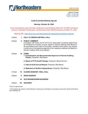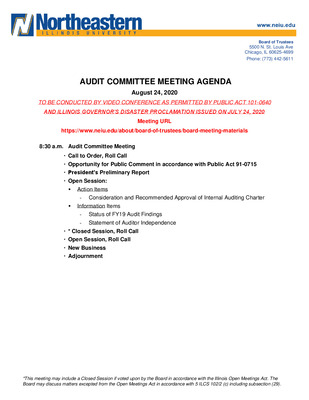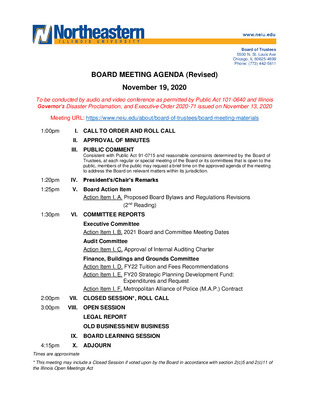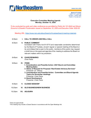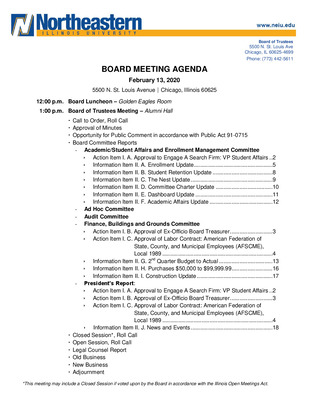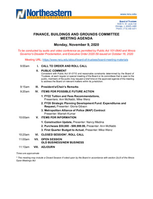 Meeting materials for the NEIU Finance, Buildings and Grounds Committee