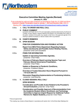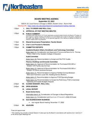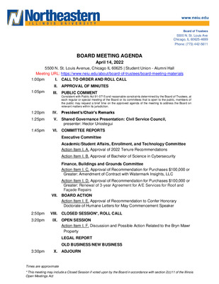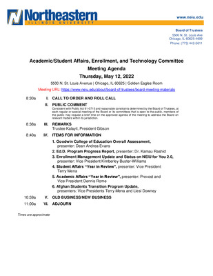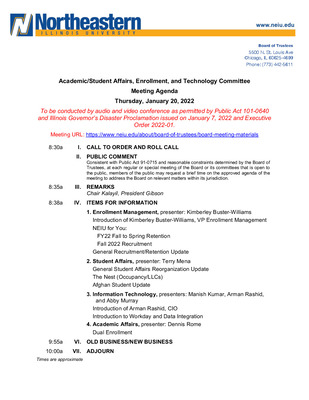 Meeting materials for the NEIU Academic/Student Affairs, Enrollment, and Technology Committee