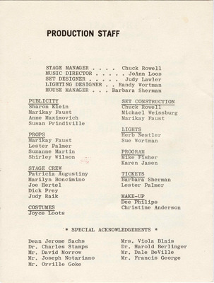• 1974 - Little Mary Sunshine Program by NEIU Theatre Department