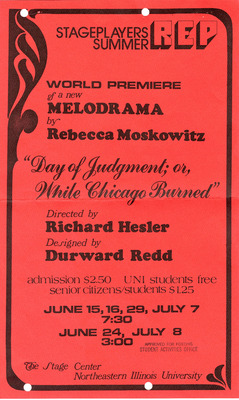 • 1979 - Day of Judgement; or, While Chicago Burned Poster by NEIU Theatre Department